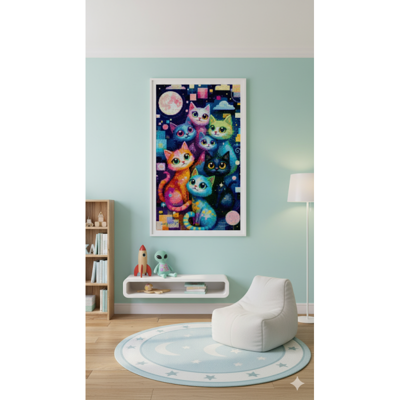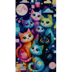 Playful, vibrant, and magical – this Diamond Art Painting of rainbow-colored cats under the moonlight is a design that bursts with charm and personality. At 37x65cm, it’s the perfect size to enjoy plenty of detail without being overwhelming, making it a fun and rewarding project.